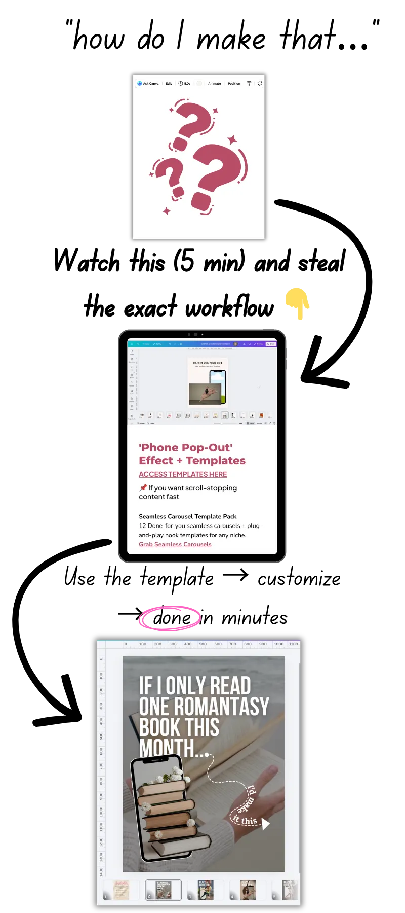 Spending hours “trying things” → to knowing exactly what to create the second you open Canva